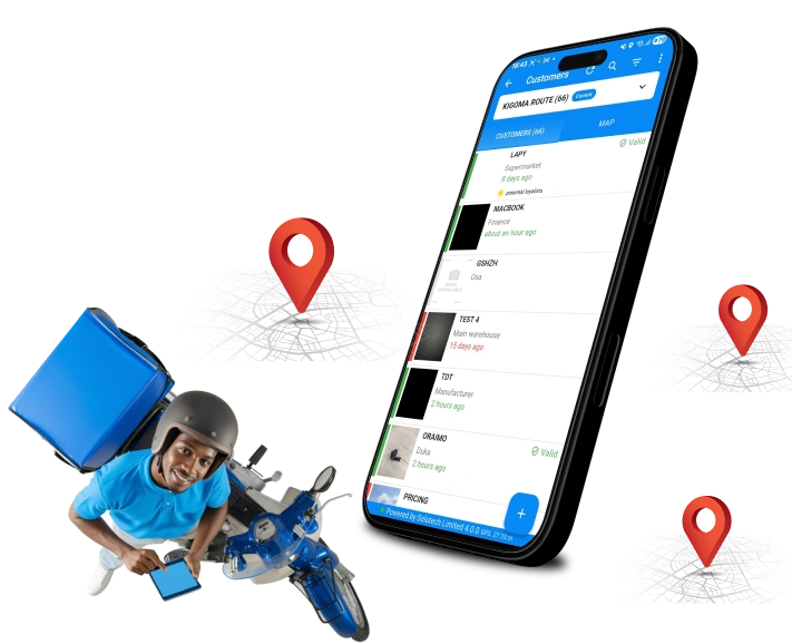 Solutech SAT tracks visits, sales activities, and order capture in real time, while optimizing routes, outlet prioritization, and territory coverage.